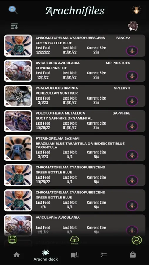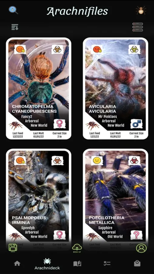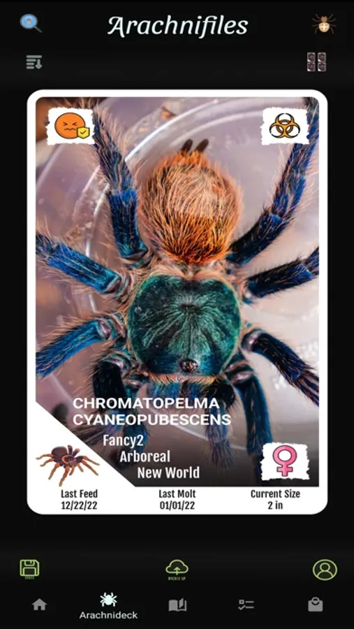 Arachnifiles is not just any tracking app - it's a visually stunning, card-style app that lets you keep track of all your favorite inverts in an interactive way. From Amblypygi to True Spiders, and everything in between, Arachnifiles has got you covered. You can track multiple feeding schedules, molts, substrate changes, and even note your pets' growth rate!