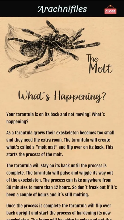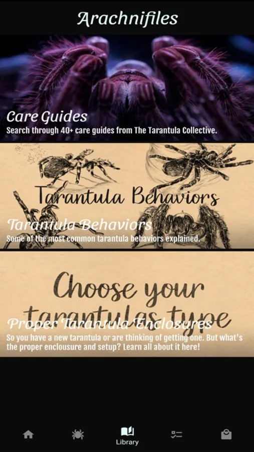 But that's not all! Thanks to our partnership with The Tarantula Collective, Arachnifiles provides access to over 40+ care guides right at your fingertips. And if that's not enough, supporting videos are also available to help you care for your pets like a pro!
