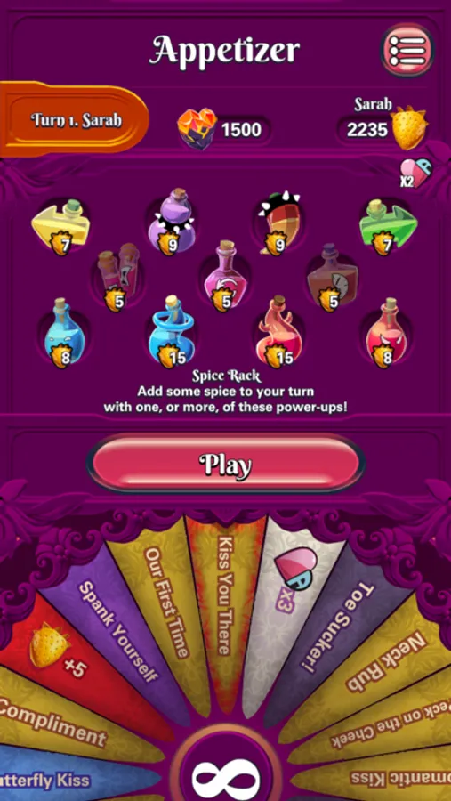 + Spices — enhance your experience by changing the results or giving your partner a cheeky punishment