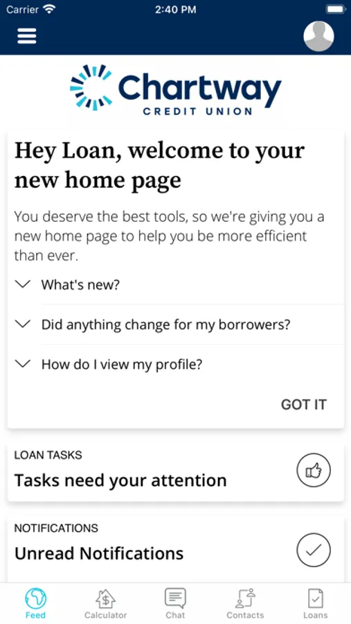 • Easily access contact information for your Chartway Loan Officer and real estate.