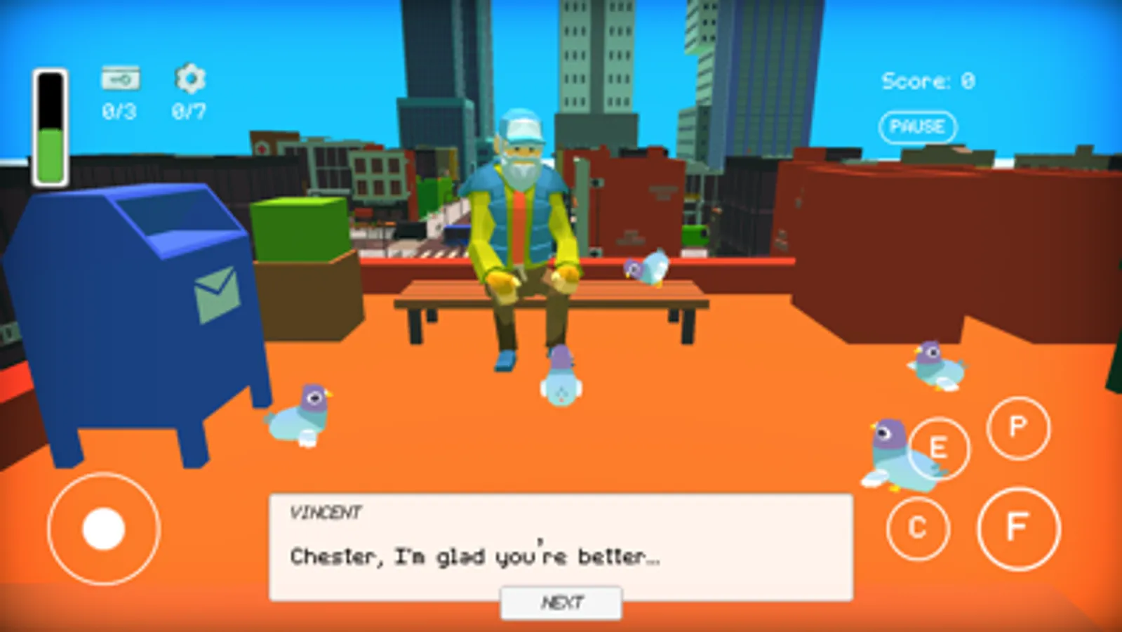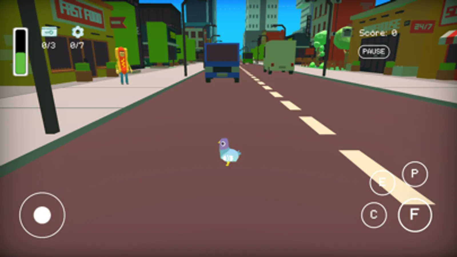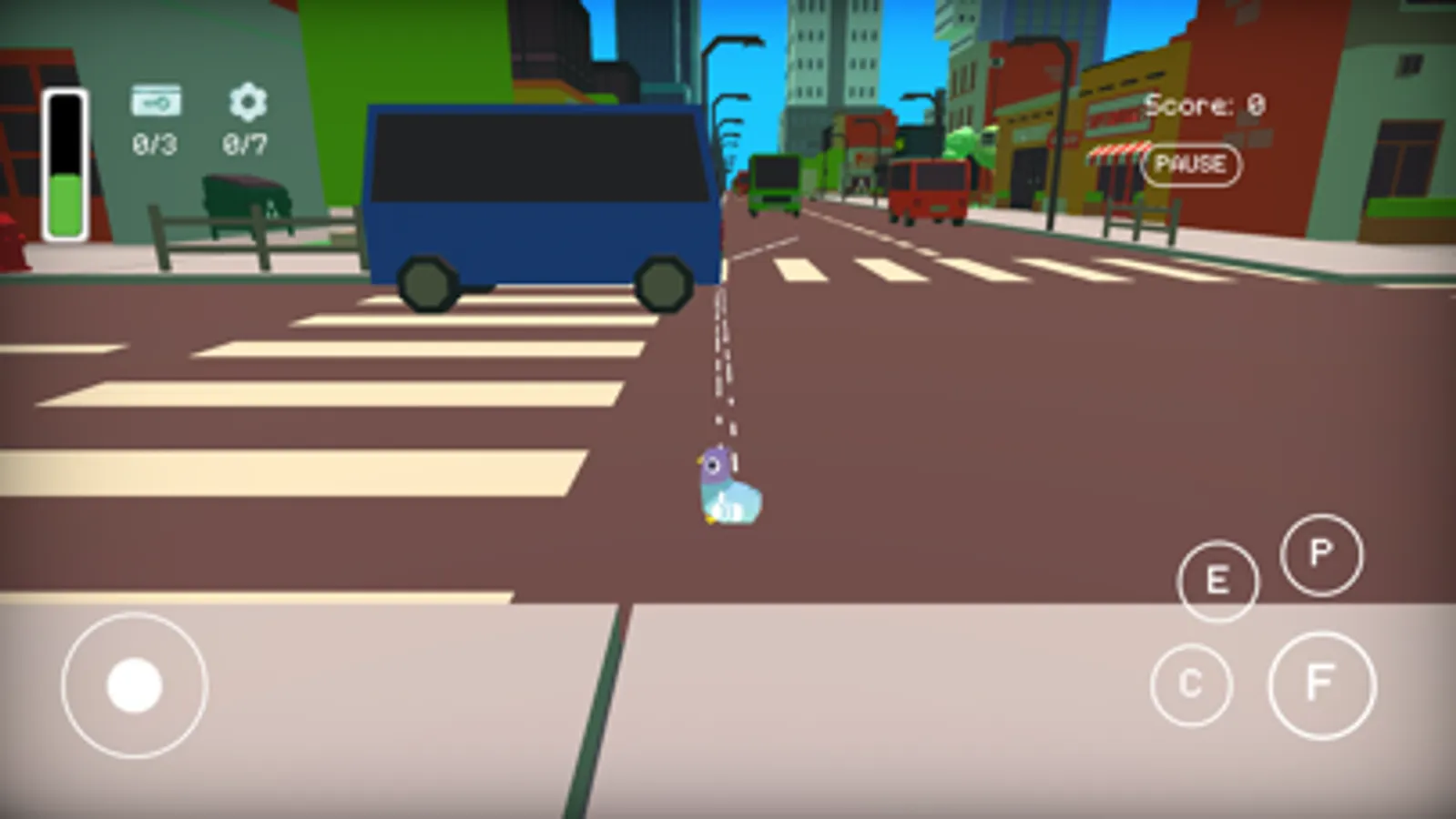 Dovy has been kidnapped! She was taken to the top of the highest skyscraper in the city. Now you, Chester, have to rescue her. To rescue her, you need to help the people in the city and use the rewards they give you to fix a ventilator so you can fly high enough. Help the people with simple pigeon activities... like delivering messages, helping out with a thing or two and of course... pooping on people and cars! Also, be aware of dangers like cars and the cat that is always patrolling the city. As they can give you some serious hits! But you got this, fly and poop little pigeon!
