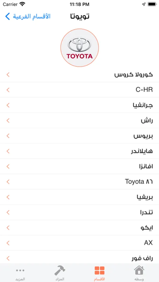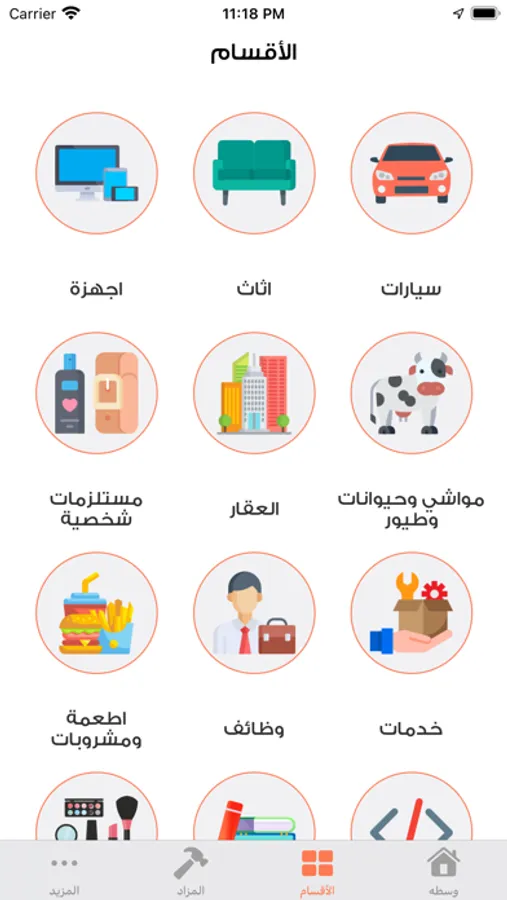 يشمل حراج وسطة عدة أقسام يصل عددها الي ثلاثة عشر قسم رئيسي، وهم قسم الأثاث، وقسم السيارات، وقسم الأجهزة، وقسم مواشي وحيوانات وطيور، وقسم العقار، وقسم المستلزمات الشخصية وقسم الوظائف، وقسم الأطعمة والمشروبات، وقسم البرمجة والتصاميم، وقسم كتب وفنون، واخيراً قسم المنتجات الرياضية، حيث يضم كل قسم عدد من المنتجات المختلفة ذات الجودة العالية، واحيانا يتم عرض منتجات مستخدمة في مزادات مختلفة علي الموقع، كما يتعاقد المتجر خلال هذه الاقسام مع عدة ماركات عالمية في مختلف المجالات، مثل ماركة هوندا ونيسان للسيارات.