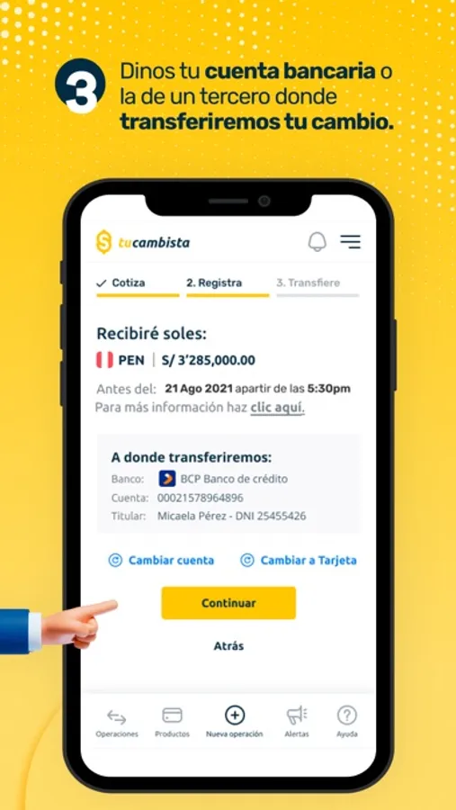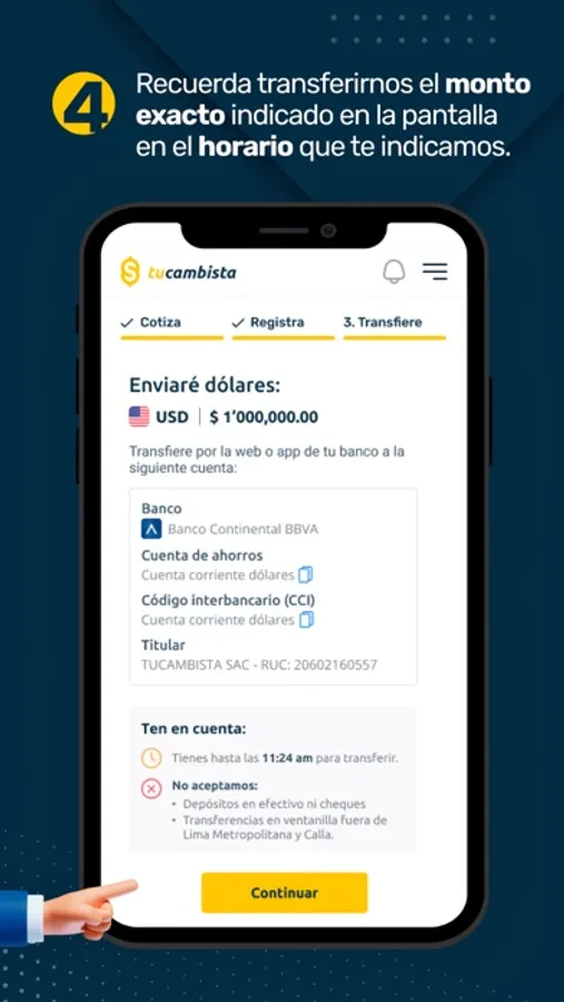 Change your dollars and soles from your cell phone from wherever you are through our mobile application. Forget queues, leaving home or your office and wasting time. Change quickly, safely and at the best price in Tucambista.