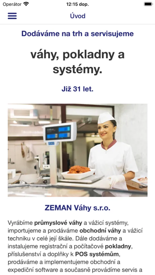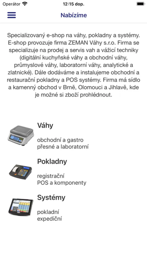 Vyrábíme průmyslové váhy a vážicí systémy, importujeme a prodáváme obchodní váhy a vážicí techniku v celé její škále. Dále dodáváme a instalujeme registrační a počítačové pokladny, příslušenství a doplňky k POS systémům, prodáváme a implementujeme obchodní a expediční software a současně provádíme servis a veškeré služby ke všem prodávaným produktům.