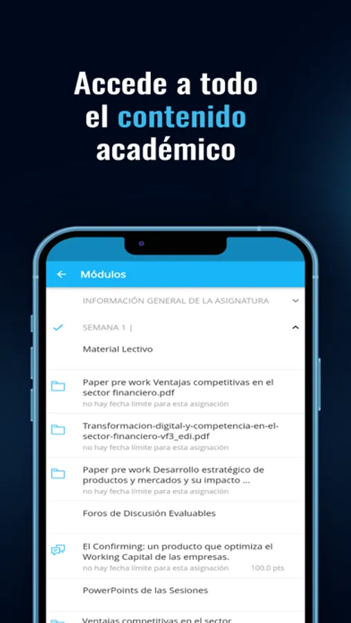 Como estudiantes, encontrarás todas tus notas, asignaturas, foros de discusión, calendario, bandeja de comunicación con los datos que necesitas para contactar con tus compañeros como con profesores y mucho más. Conoce algunas de las funcionalidades destacadas: