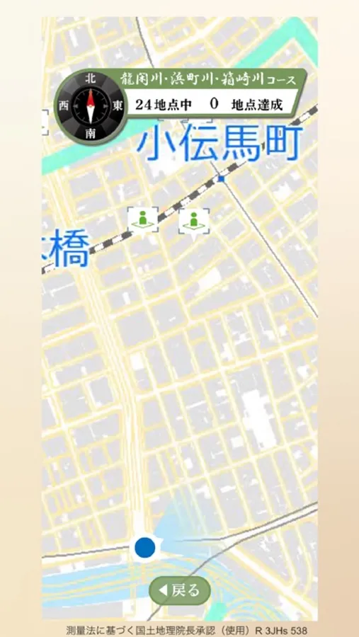 ・各運河跡周辺の名所旧跡などを20か所程度ピックアップして、使用者自らがヒントからそれを探して歩く。最後に達成度に応じて点数が表示される。