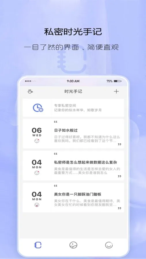 记年日记本 - 一目了然的界面、简便直观的用法使得写日记成为一种简单的乐趣。记年日记本为您带来超乎一般日记应用的使用体验,不花哨,不复杂,回归本真,一切只为更好的记录。