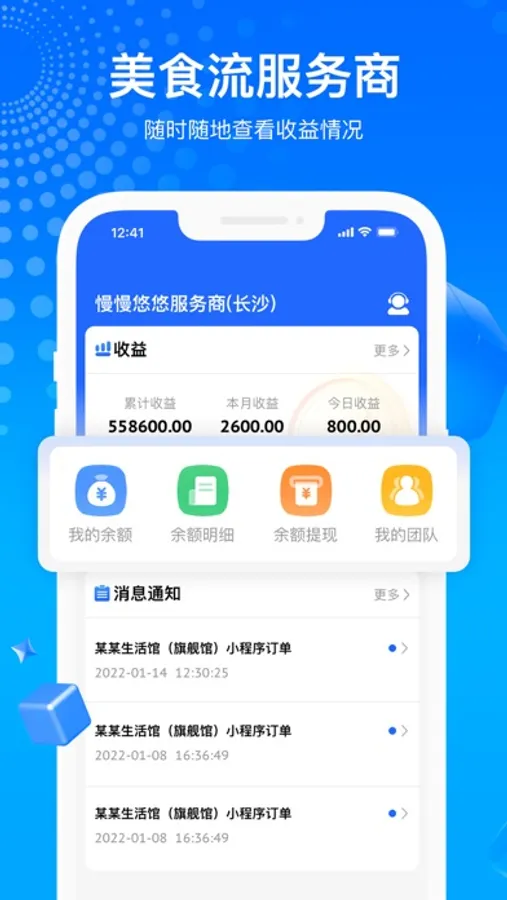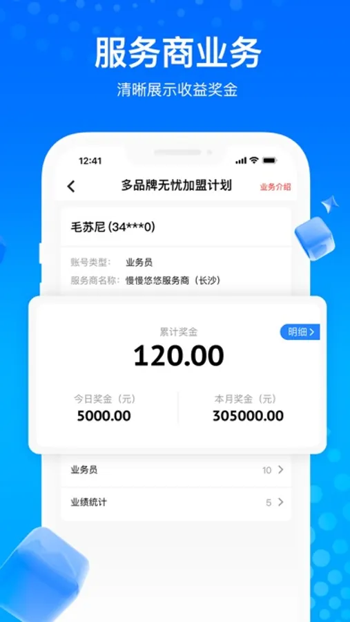 美食流服务商App是一款提供给服务商和业务员的App,可以帮助服务商管理业务员。
