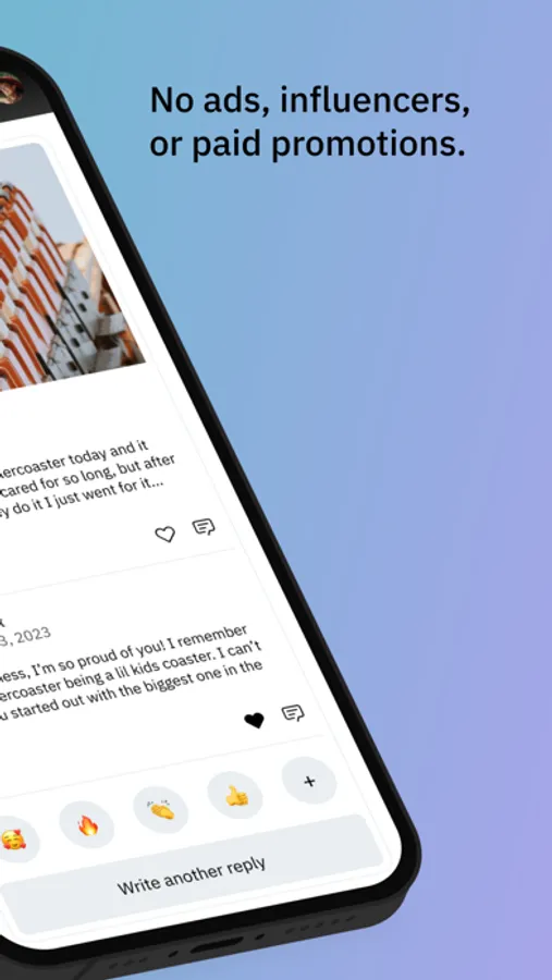 Don’t stress about clout or arguing with friends of a friend. Only friends can interact with you on Postcard. Even if you reply to a friend’s post, only mutual friends will see it.
