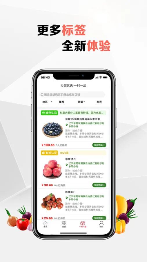 乡邻优选是专注于乡邻站长搭建的农特产品电商平台,与普惠金融相结合,共同构成乡邻小站,通过站长在当地的源头把控,做到更好的品控和物流支撑,进一步保障当地农村收益,带动经济收入。