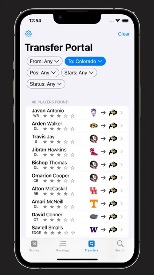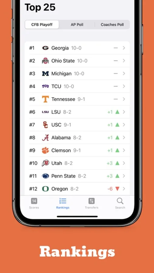 CFB Scores is the only app that brings all of the top college football scores, rankings, records and stats both live and from the past 50 years into one place while also embracing Apple’s native design language. Stay up to date with your favorite team by following their scores, record, and ranking.