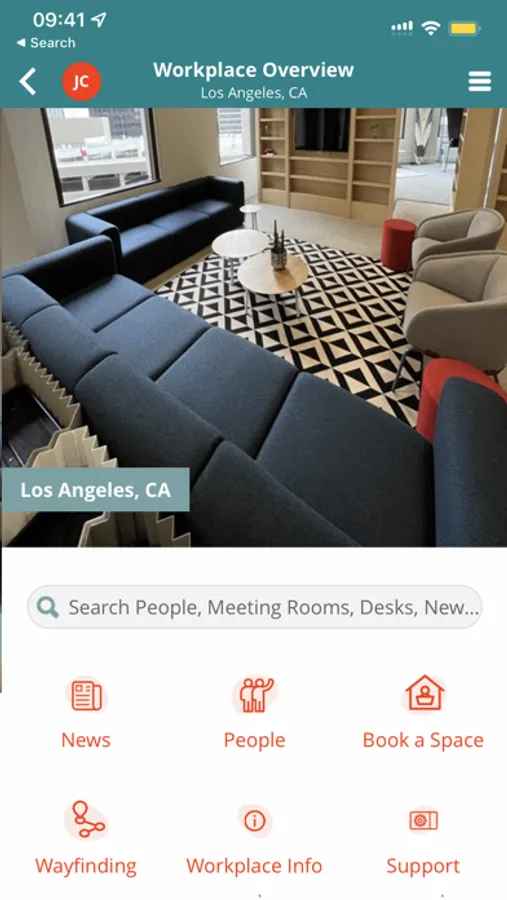 - Find and book available desks and meeting rooms, create meetings, and add other users