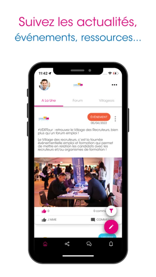 Rejoignez l'application du Village des Recruteurs et retrouvez toute l’actualité de la tournée du Village et de ses villageois !