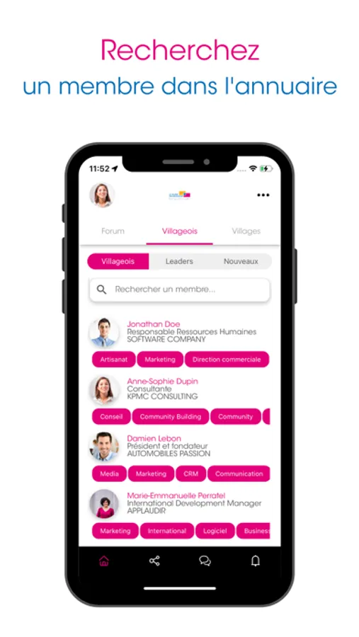 Recherchez facilement un membre de la communauté par compétence, nom, prénom, entreprise,...