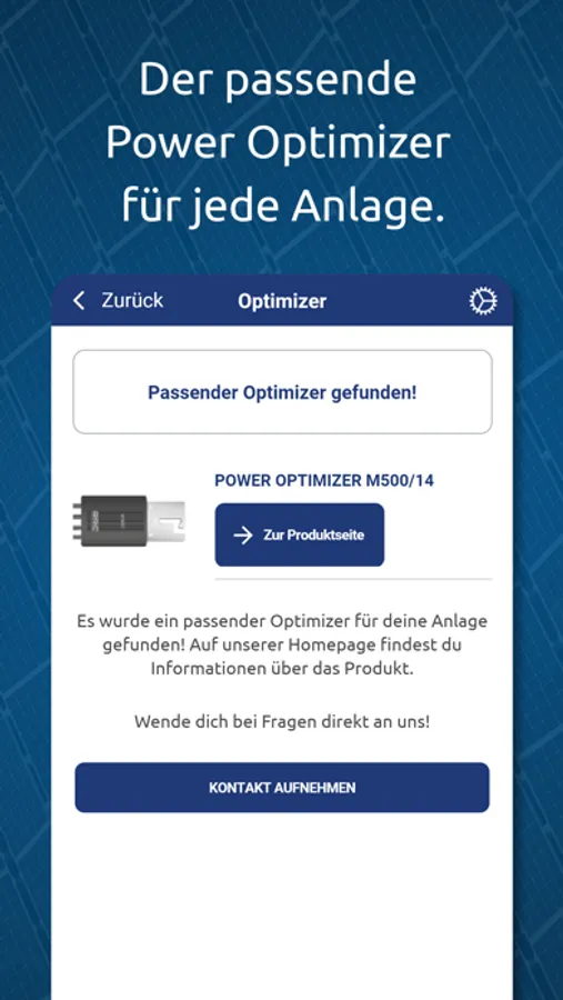 Du hast keinen passenden Power Optimizer gefunden? Kein Problem, du kannst gerne unser Kontaktformular auf unserer Homepage benutzen und wir finden gemeinsam eine Lösung. Um auch in Zukunft die Erwartungen unserer Kunden erfüllen zu können, würden wir uns sehr über Feedback und Anregungen bezüglich künftiger Entwicklungen freuen.