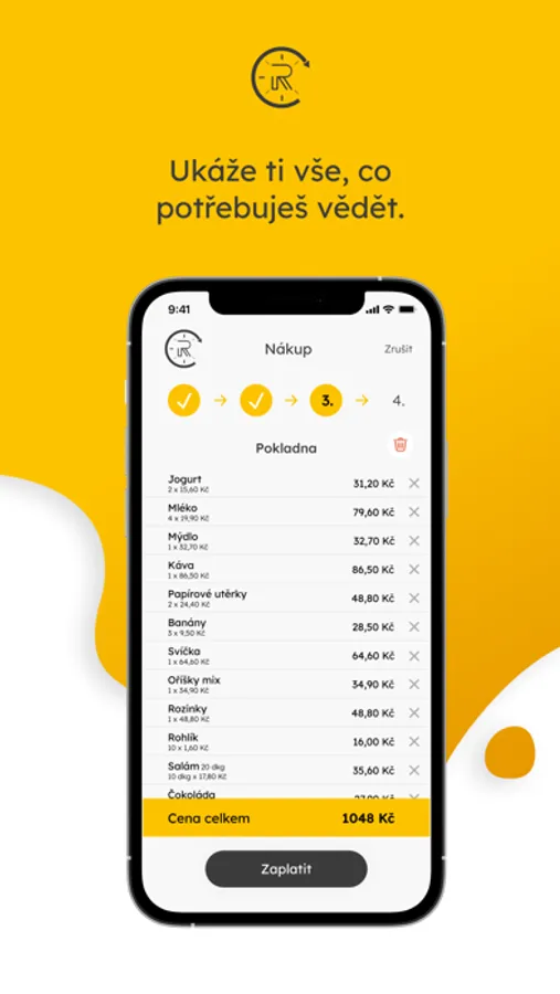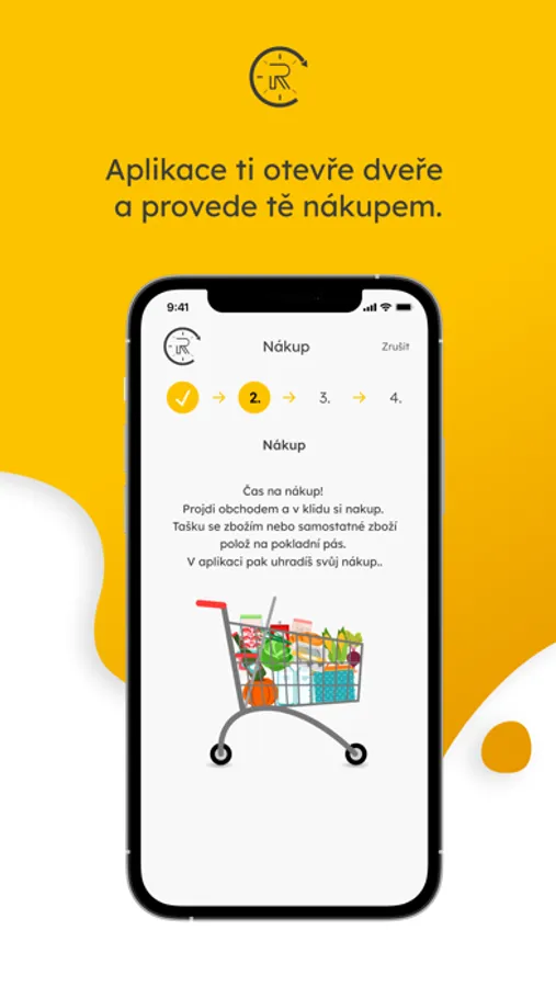 Aplikace pro nakupování v bezobslužných prodejnách Round The Clock. Pomocí aplikace vstoupíte do obchodu, nakoupíte a zaplatíte.