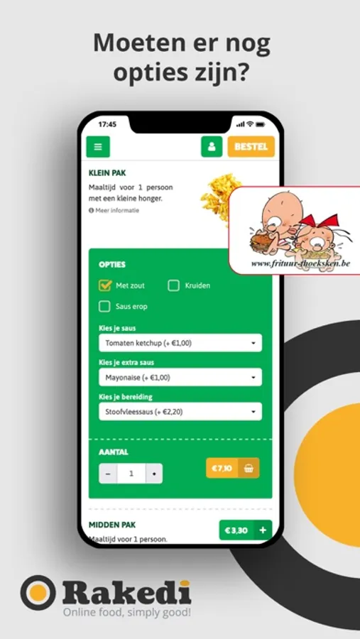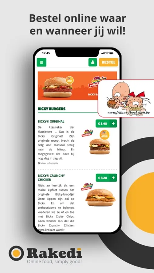 + Altijd beschikbaar: Online bestellen kan op ieder moment. Vermijd wachtrijen en bestel vanuit je zetel, wagen, onderweg, werk, school, ...