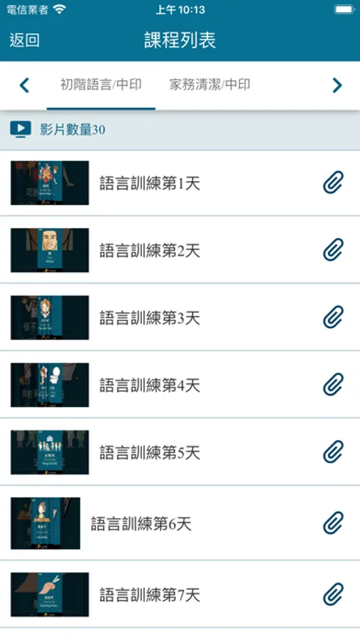 1. 課程內容:提供多元線上教育訓練課程,提昇外籍看護工専業技能