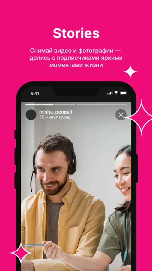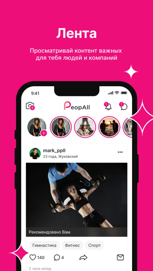 * Создавайте собственные короткие увлекательные видео Reels в PeopALL, a также смотрите ролики других пользователей.