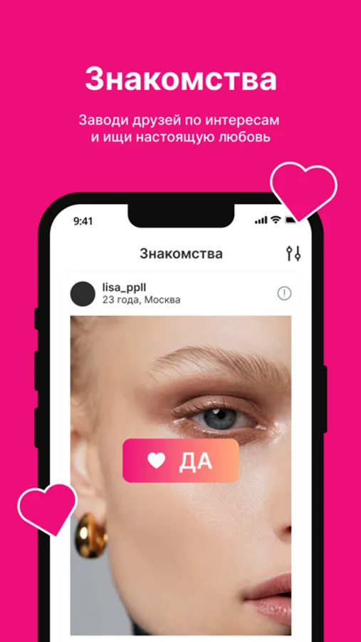 * Используйте раздел интересы для подбора пары и друзей с общими интересами.