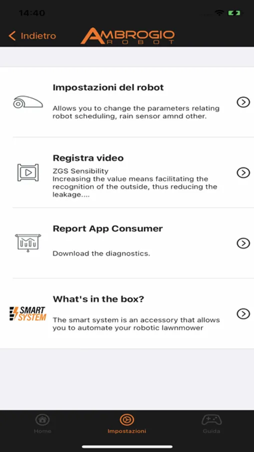 Aggiorna il tuo robot ZETA R con le ultime novità disponibili direttamente dal tuo smartphone. L’App offre anche la possibilità di scaricare il manuale dedicato.