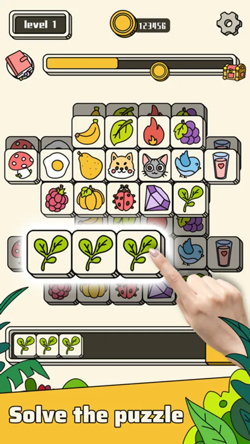 Tap the tiles, collect three same tiles to blast them all and then pass the level!