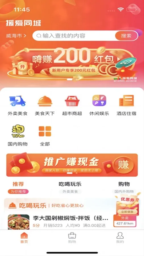 援爱同城服务平台是一款集同城外卖、到店、直播商城多样化平台,可以满足用户进行外卖下单配送,抢购堂食套餐,搜索附近商家美食,线上购物可支持国内和海外快递配送等各种生活需求。也可参加拼团、秒杀、砍价活动,只要提交订单支付生成订单,线上操作,方便快捷。