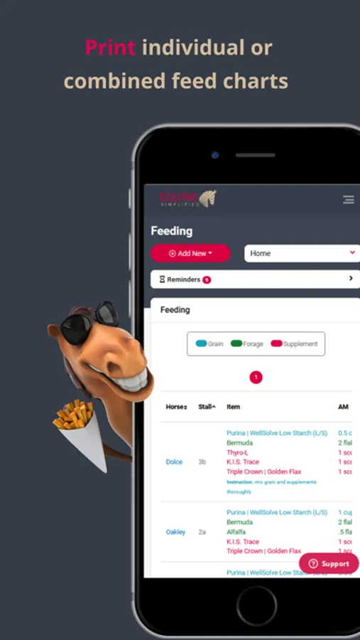 - Keep feed charts updated with unlimited feeds and supplements and provide specific feeding instructions. Print combined or individual feed charts