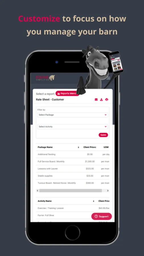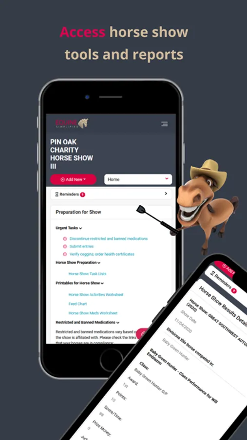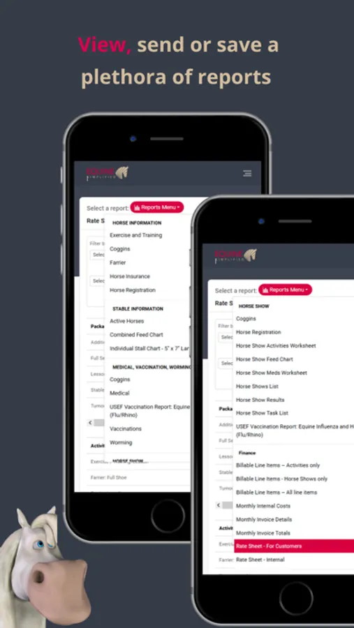 - Run a multitude of reports: horses, stable information, health, horse show and finance