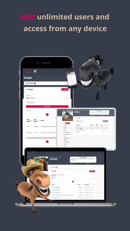 - Add basic information, locations, registrations, vets and farriers for all your horses