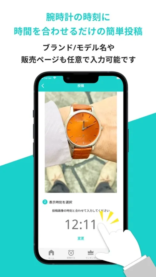 使い方は超簡単。腕時計の画像を選択して、写っている腕時計の時刻を合わせて投稿するだけ。