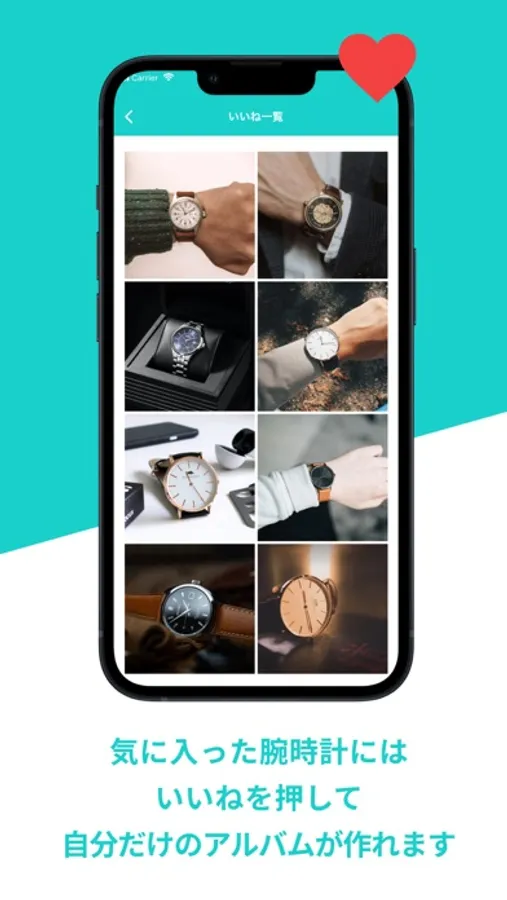 表示された腕時計にいいねタップすると、自分だけのお気に入り腕時計アルバムが作れちゃいます。