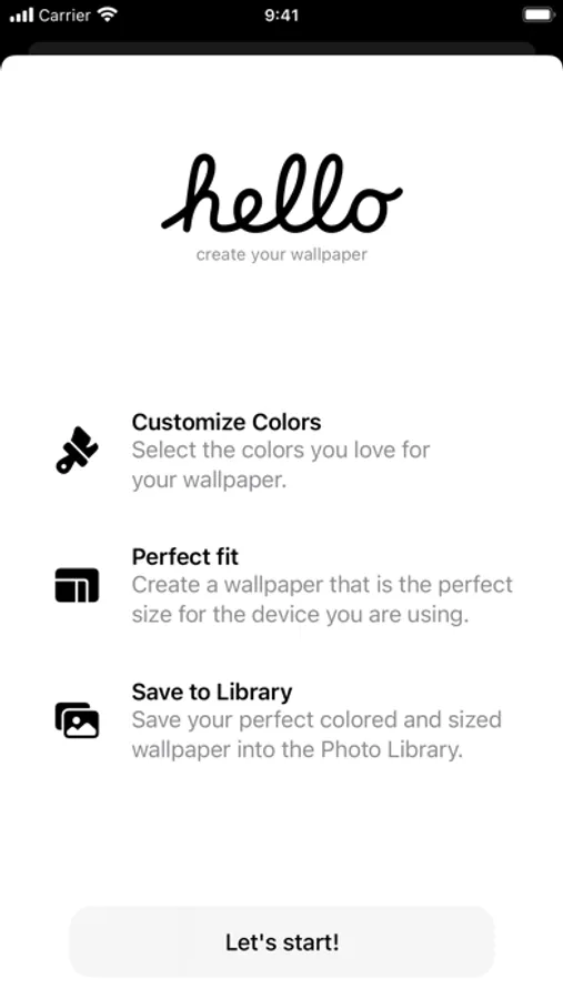 With HelloCustomWallpapers you can select the colors you love for your Hello wallpaper. The App saves in your photo library a wallpaper that is the perfect size for the device you are using.