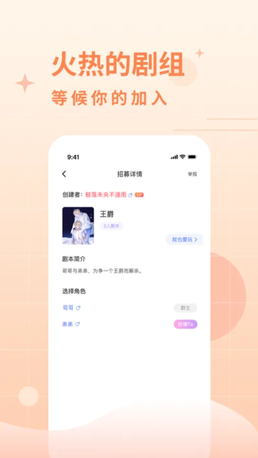 创建自己想要的剧情,邀请三量好友加入,一起畅聊,一起海皮