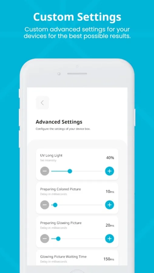 Using Bluetooth or cable, the App gives a series of commands to the box.
