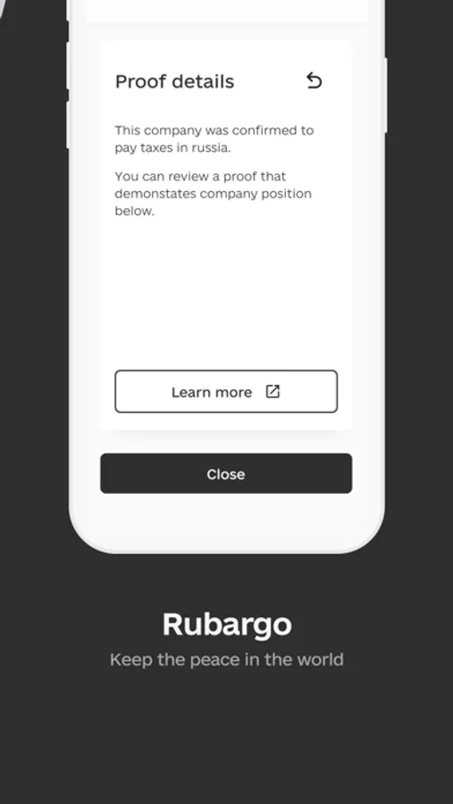 Rubargo allows you to find any brand or company that is operating in Russia. With our service, you can not only find such a company, but also check proof links with information about the company's public statement or public research that can confirm this information.