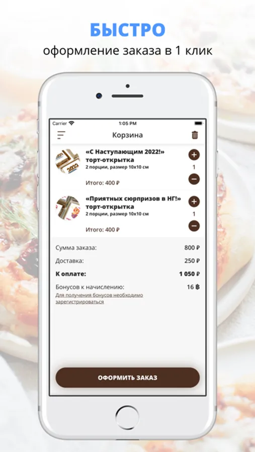 Скачивайте наше приложение, оформляйте заказ и наслаждайтесь любимой едой, где бы Вы ни были! Приятного аппетита!