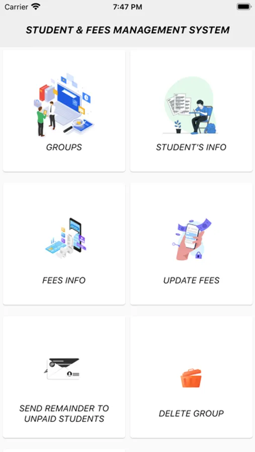 Fees management app features includes: