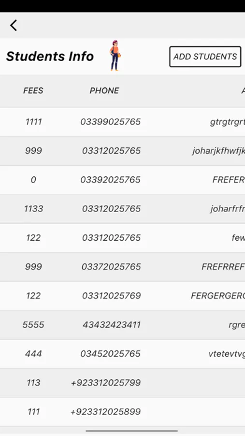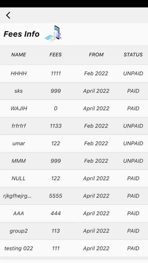 7) Fees info of every student in which it describes the paid fees and unpaid fees students.