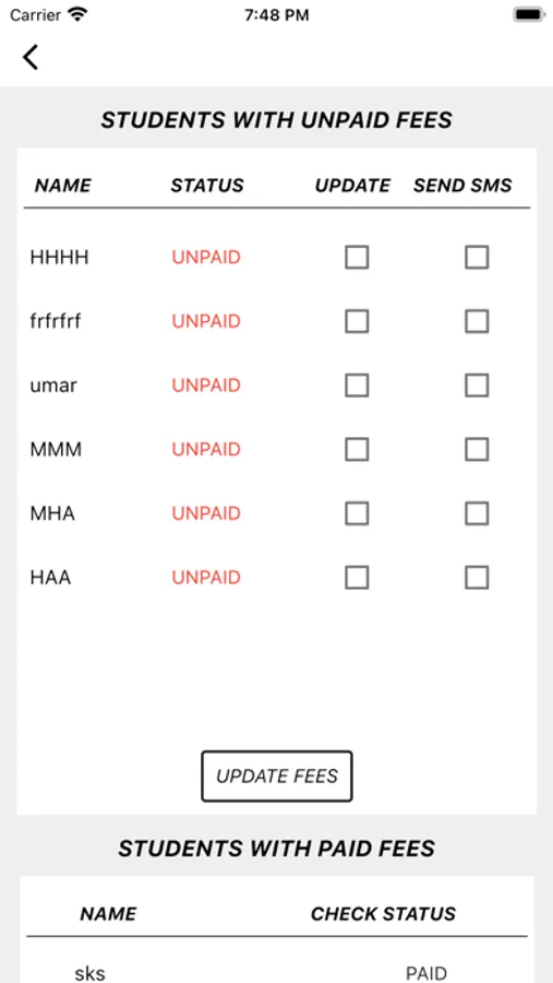 10) Send local messages to the paid students when the fees is updated.