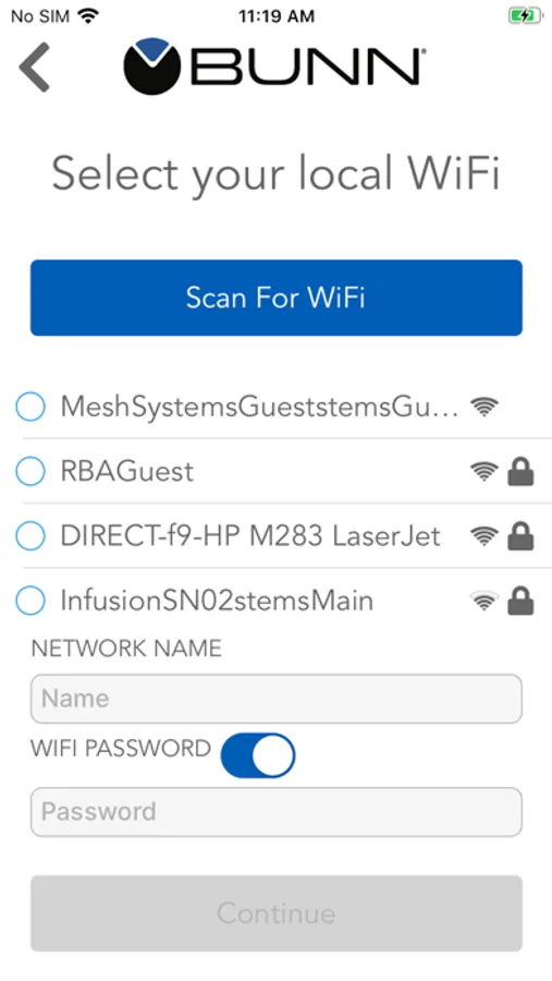 Mobile provisioning tool used to connect your BUNNlink machine to a local WiFi network