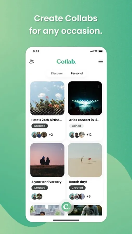 Bring your friends together on Collab to create shared albums filled with your favorite moments and memories. Whether it's a special event, weekend getaway, or even a casual brunch, everyone can contribute their photos and videos to capture the moment from different perspectives.