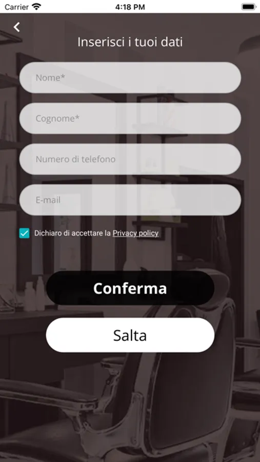 Inserisci i tuoi dati, scegli i trattamenti di cui hai bisogno e prenota all’orario a te più comodo.