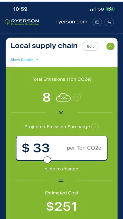 Discover how changes to your metal supply chain could impact your emissions using the Ryerson Emissions Illuminator. Evaluate the emissions impact of your current supply chain, compare it against industry averages, and explore alternatives. It’s not your average emissions calculator.