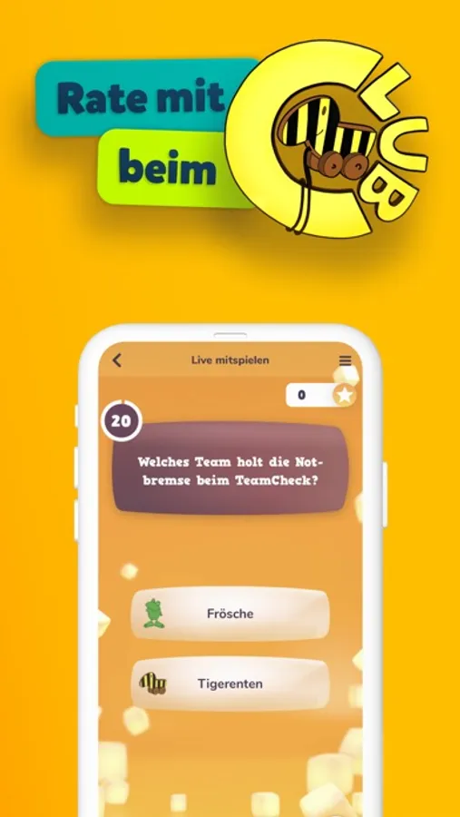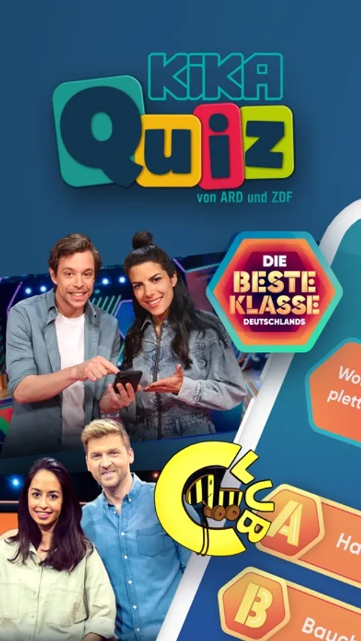 Unsere KiKA-Quiz App umfasst mehrere Spielbereiche: das Quizcamp, Mitspielen während den KiKA TV Shows von “Die beste Klasse Deutschlands” und “Tigerenten Club” sowie die App Live Show als Livestream - hier kannst du direkt live mitquizzen und dein Wissen unter Beweis stellen.