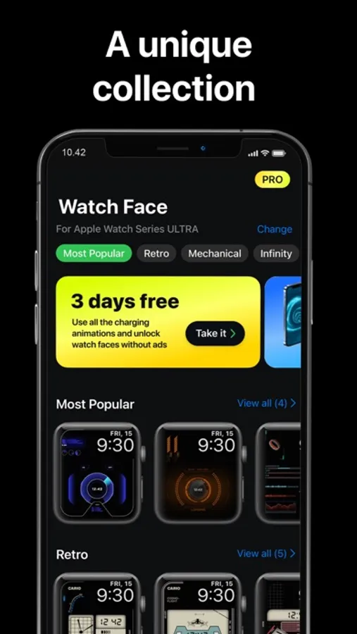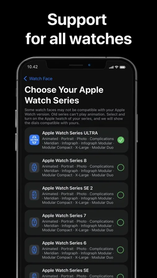 But that's not all! Our app also lets you set individual watch faces on your Apple Watch. You can mix and match different styles, complications, and colors to create your own unique look. You can also save your favorite watch faces and switch between them easily. No matter what mood you are in, our app will help you express yourself!