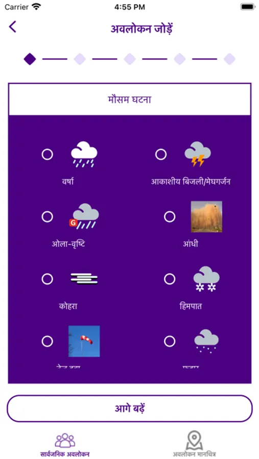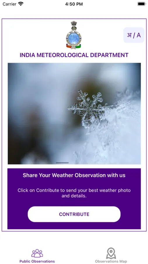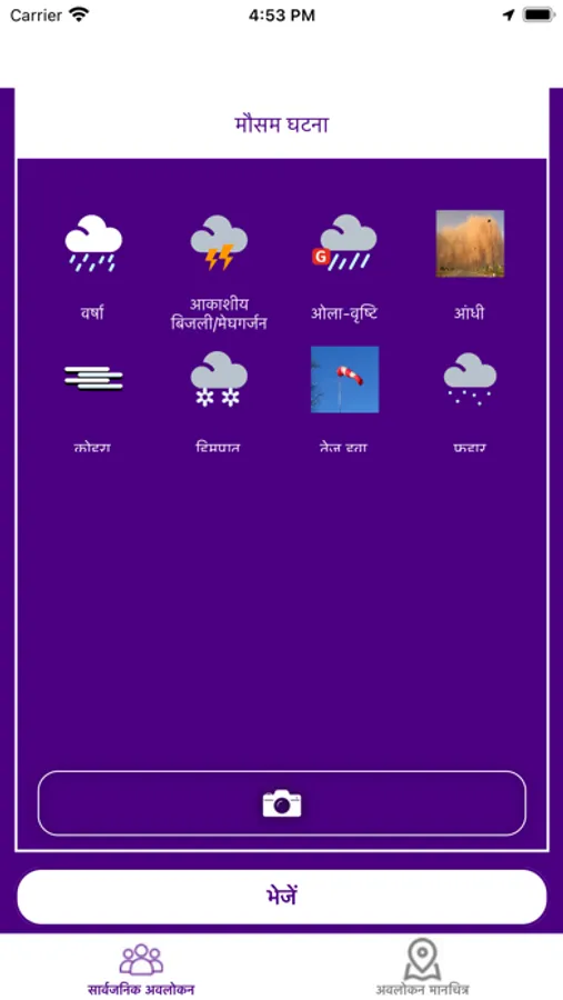 Application provides weather information to users location wise. Users can also provide their feedback on this app. App contains dual mode :Quick , Advanced for Weather Feedback. Multiple Languages added. i.e. English, Hindi, Marathi, Punjabi, Gujrati, Bangla, Odiya, Assamese, Tamil, Telugu, Kannad, Malyalam etc...