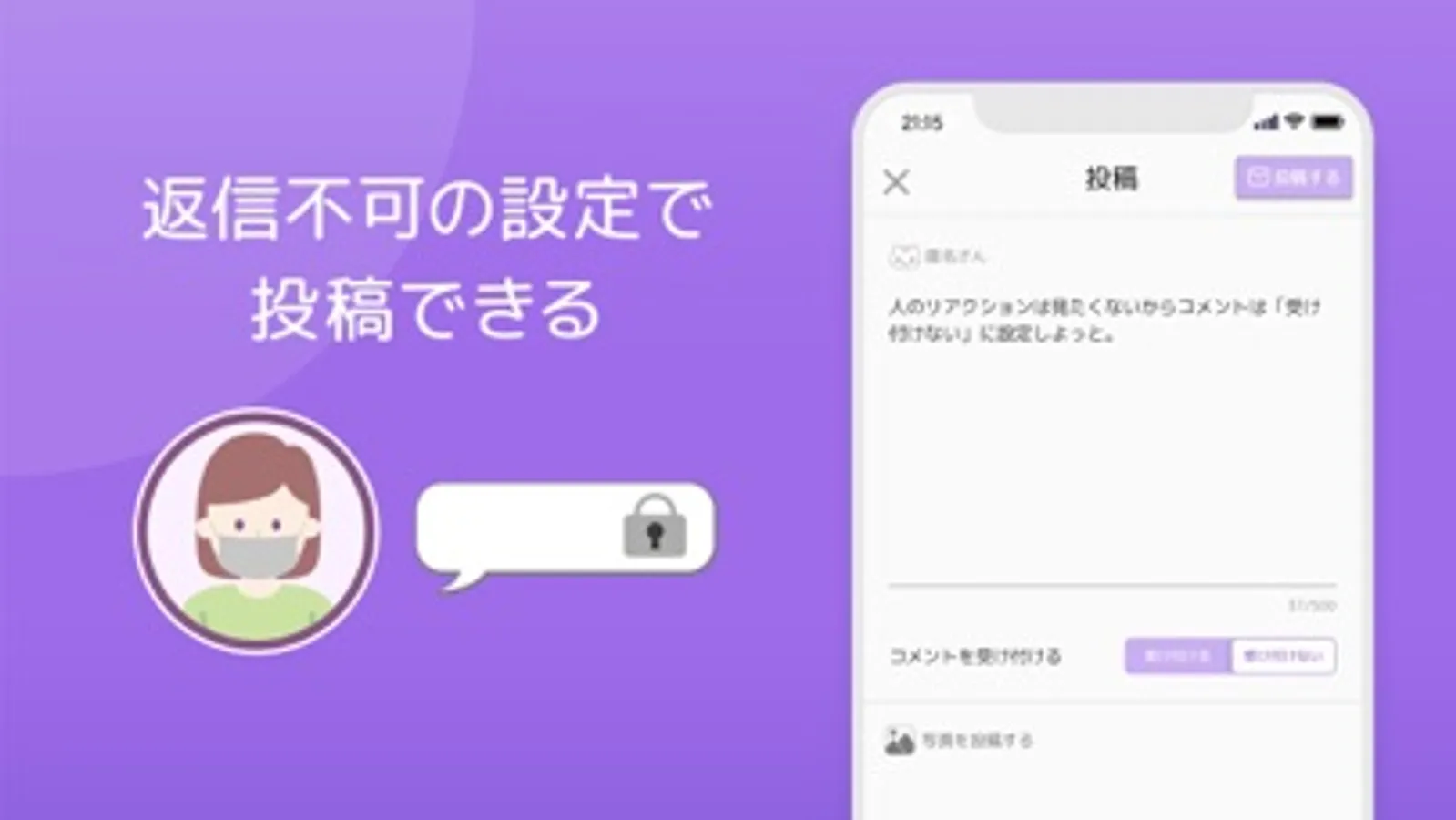 つぶやきに対する返信は投稿画面で「不可」に設定できます。他の人の評価は気にせず自分だけの気分でつぶやきましょう。