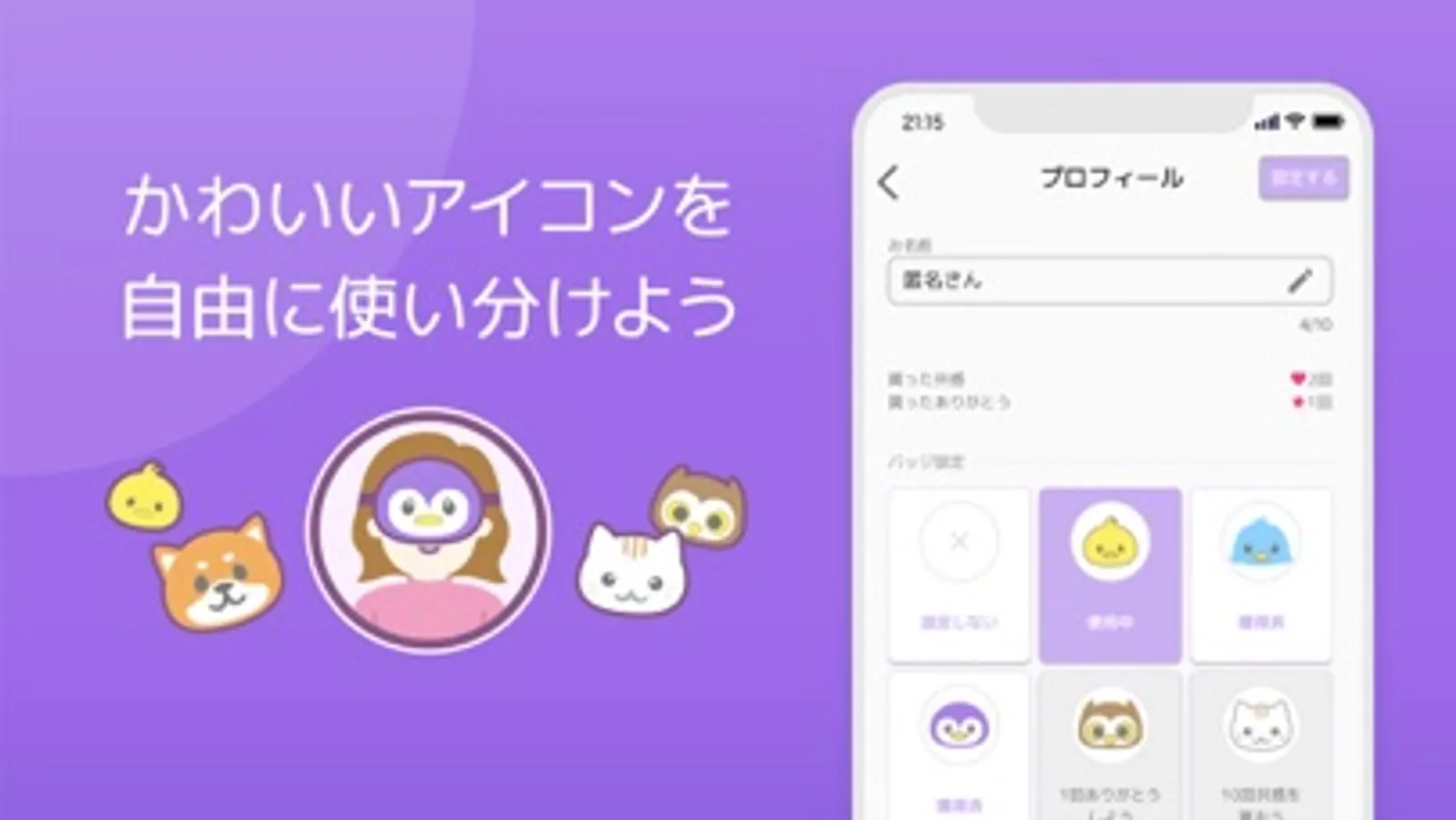 気分に合わせてかわいいアイコン付きで投稿することができます。「グッち」を使い込むといろんなアイコンが開放されていきます。お気に入りのアイコンをぜひ見つけてみてください。アイコンはプロフィール画面からいつでも変更できます。