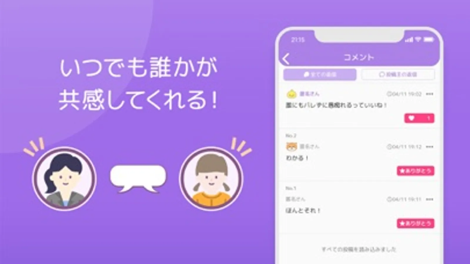 共感:投稿やコメントに表示されるハートマークのアイコンで共感したことを伝えられます。